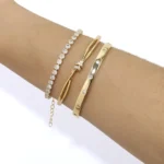Bracelete Zophir Lux Liso Cravejado em Zircônias Folheado a Ouro 18K – Sofisticação e Brilho em Cada Detalhe