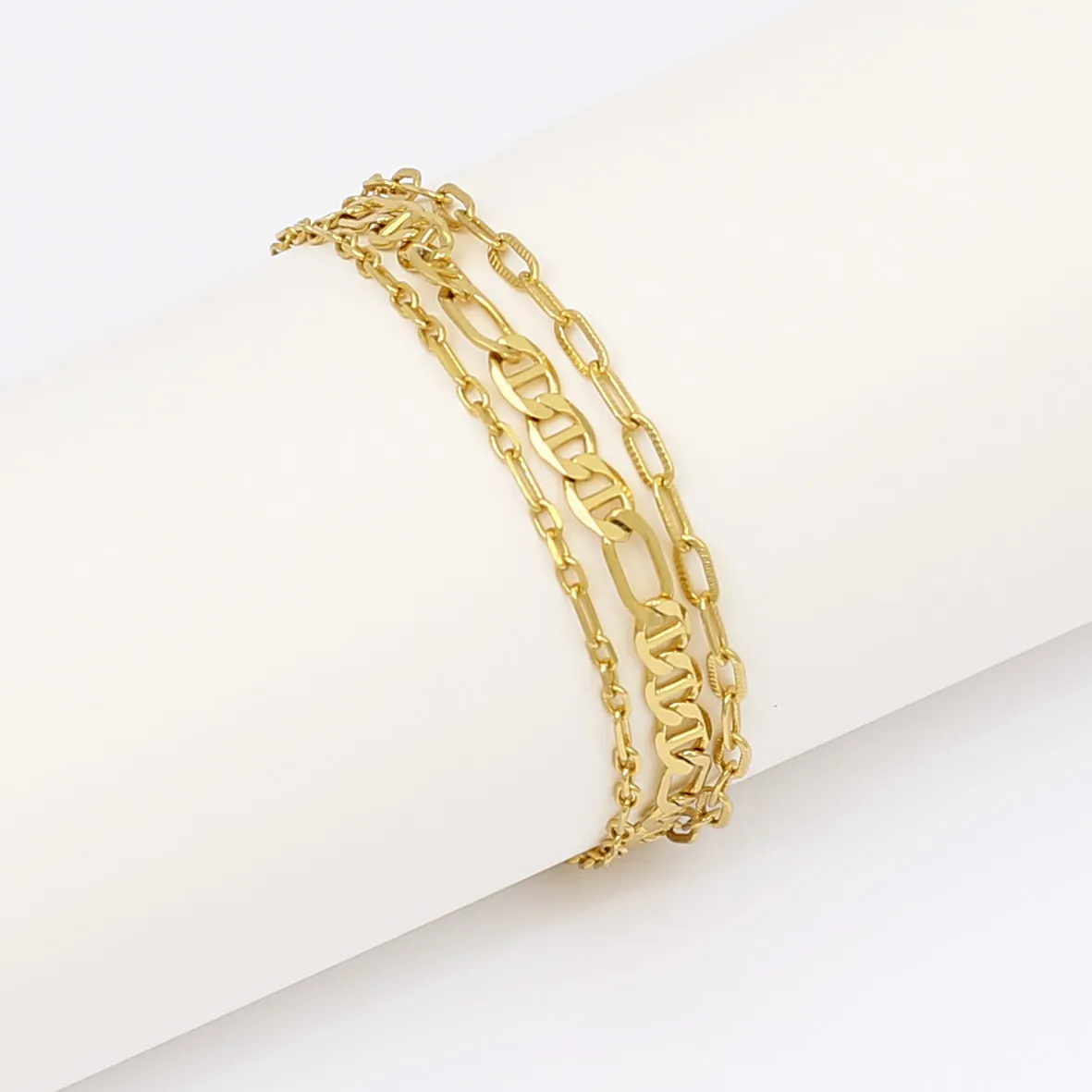 Pulseira Zophir Tripla Malha Piastrine com Elo Alongado 3×1 Folheado a Ouro 18K – Sofisticação e Elegância para seu Estilo